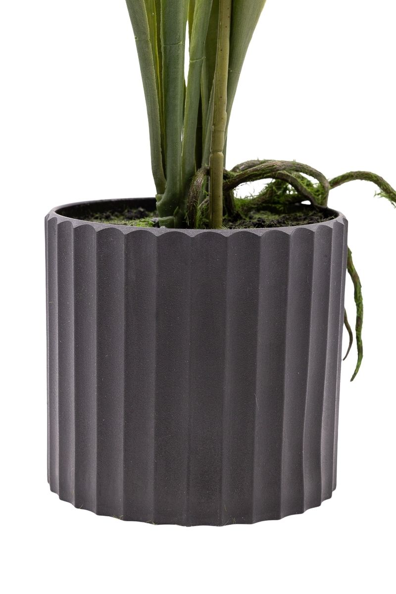 Con una floración abundante y elegante, esta orquídea Cymbidium en color rosa destaca por la armonía de sus formas y la suavidad de su tonalidad. Sus flores, perfectamente definidas, crean una composición equilibrada y sofisticada que aporta luz y frescura al ambiente. El acabado realista de la planta permite disfrutar de su belleza durante todo el año, manteniendo siempre un aspecto impecable sin necesidad de cuidados. El macetero decorativo en color negro aporta un contraste moderno y limpio, realzando la delicadeza de las flores y convirtiéndola en una opción ideal para decorar con estilo y sencillez.